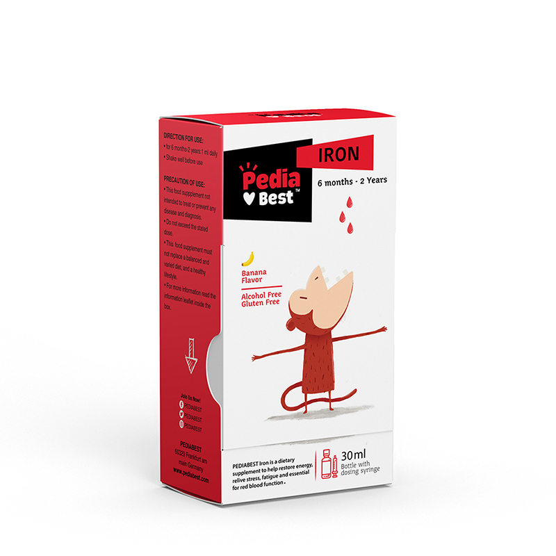 قطره آهن پدیابست مناسب اطفال 6 ماه تا 2 سال بوده و موجب پیشگیری و درمان کم خونی ناشی از فقر آهن کودکان میشود. این مکمل فاقد الکل و گلوتن بوده و با طعم موز برای مصرف فرزندان شما خوشایند است.