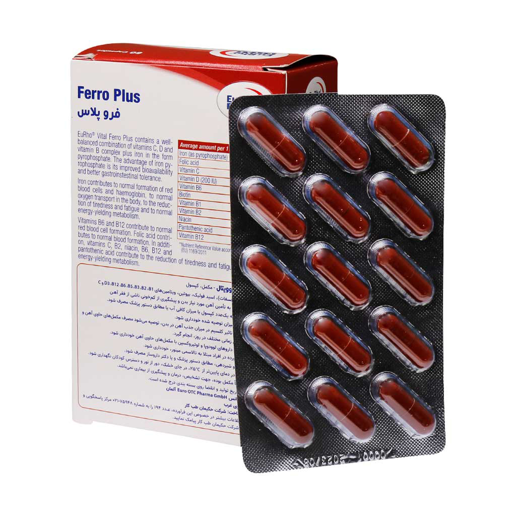 - کمک به افزایش جذب آهن به واسطه وجود ویتامین C در کپسول فرو پلاس یوروویتال