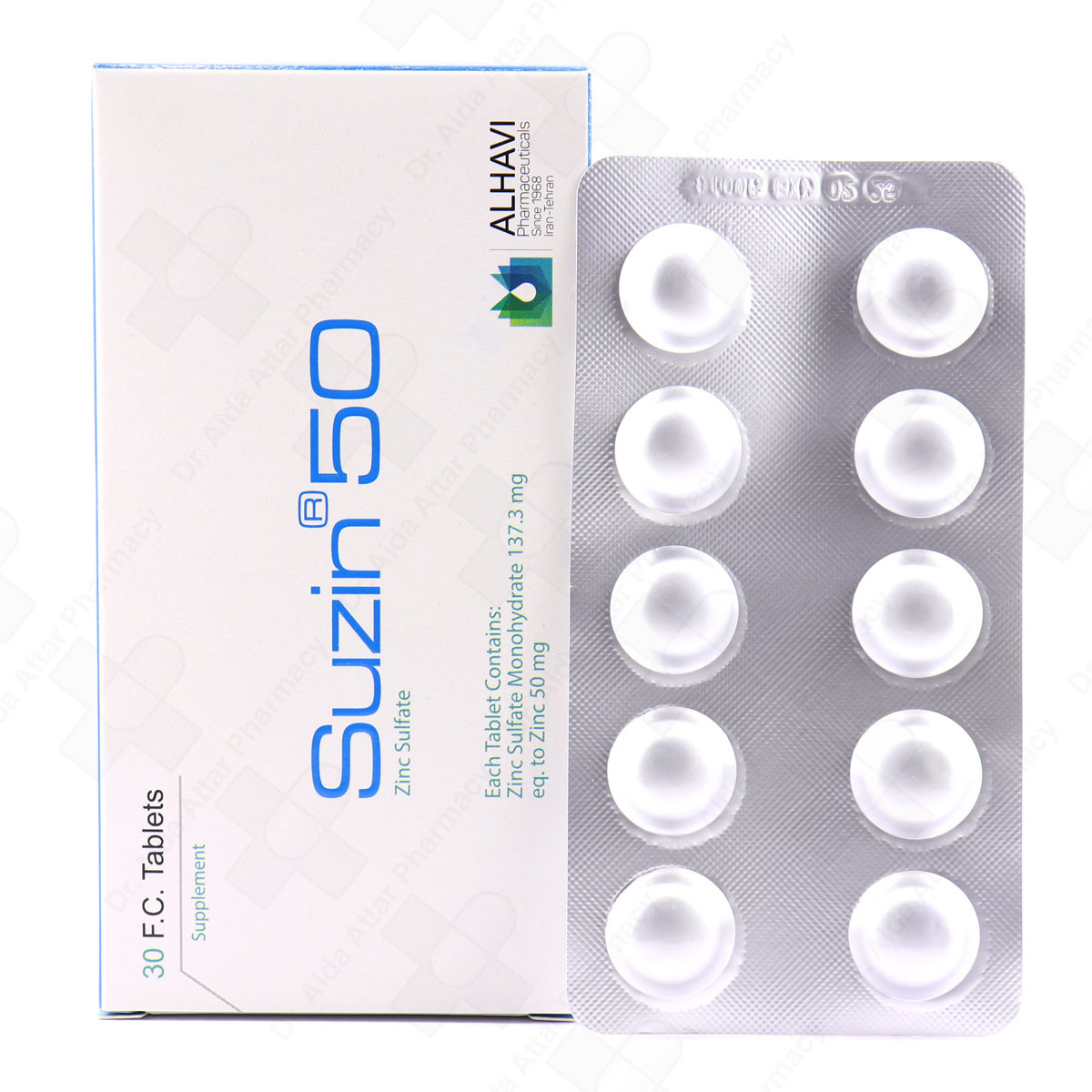 - قرص سوزین 50 حاوی 50 میلی گرم زینک خالص به فرم سولفات در هر قرص