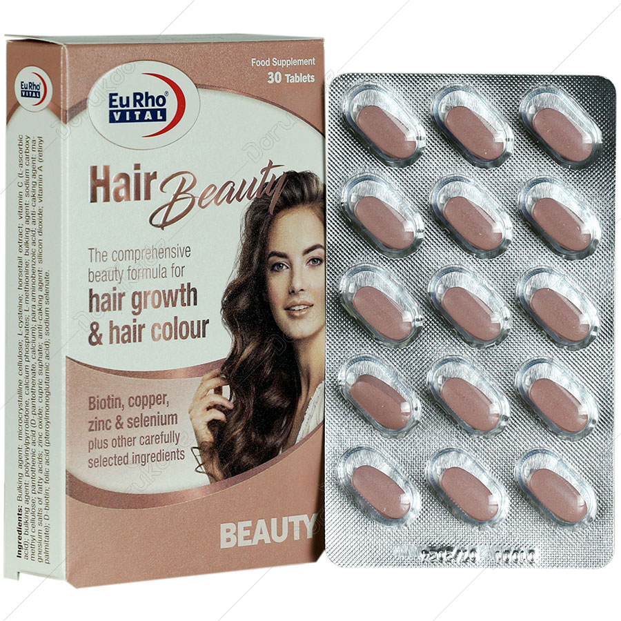 - قرص هیر بیوتی، کمک به تقویت فولیکولهای مو با ۹۰۰ میکروگرم بیوتین و ۱۵ میلیگرم زینک برای کاهش نازک شدن و ریزش مو