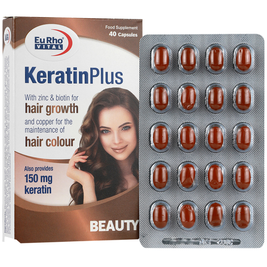 - کراتین پلاس یوروویتال حاوی کراتین، روی، بیوتین، مس، فولیک اسید، ویتامین B12 و ویتامین D
