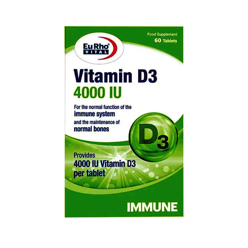 - ویتامین دی یوروویتال، حاوی 4000 واحد بین المللی ویتامین D به ازای هر قرص