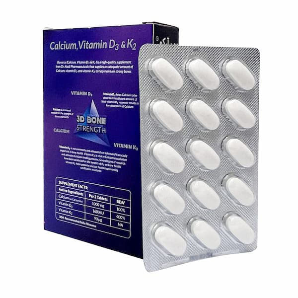 - حاوی کلسیم، ویتامین D3 و ویتامین K2