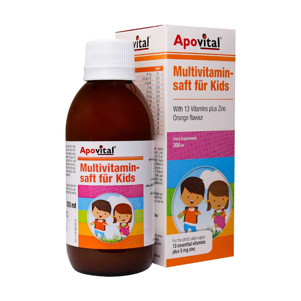 - شربت مولتی ویتامین آپوویتال، فرآهم آورندهی ویتامینها و زینک برای کودکان