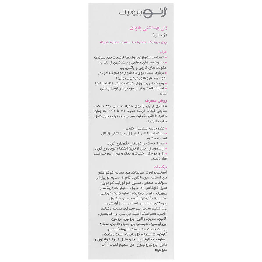 ژل بهداشتی ژنیتال بانوان ژنوبایوتیک