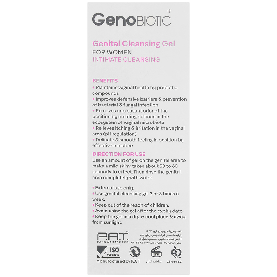 - ژل شستشوی بانوان ژنوبایوتیک کاهش دهنده التهابات ناحیه تناسلی