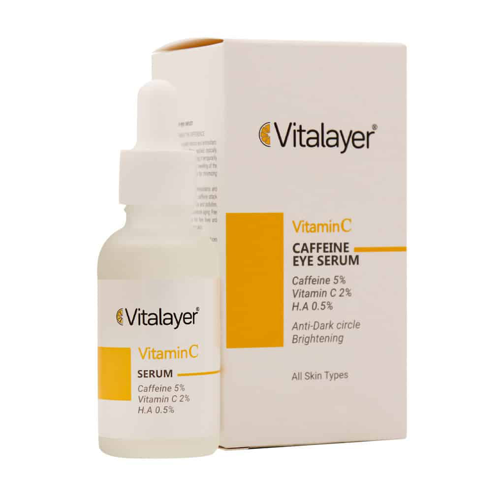 - سرم دور چشم کافئین و ویتامین سی ویتالیر، حاوی مواد آنتی اکسیدان