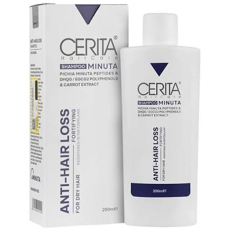 - شامپو مینوتا سریتا برای موهای خشک غنی از ترکیبات پلی فنلی و پپتیدی