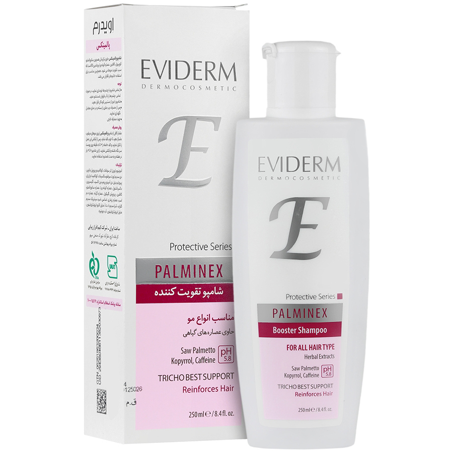- شامپو اویدرم پالمینکس، تولید شده با فرمولاسیون تخصصی ضد ریزش با عصارههای گیاهی
