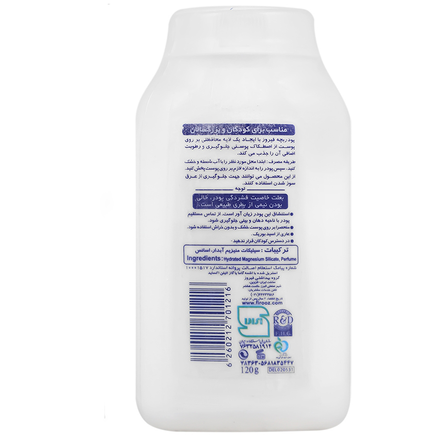 - پودر بچه فیروز حاوی سیلیکات منیزیم یا پودر تالک