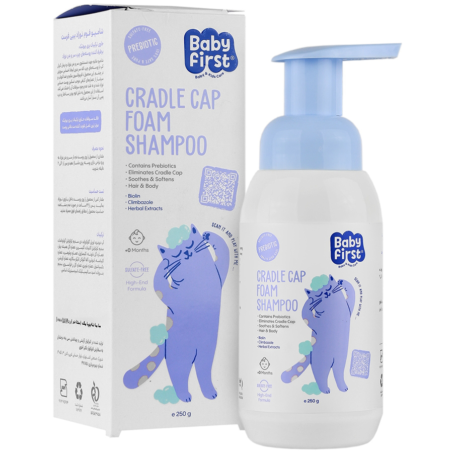 - شامپو فوم نوزاد بیبی فرست، برطرف کننده پوسته های چرب سر و بدن نوزاد